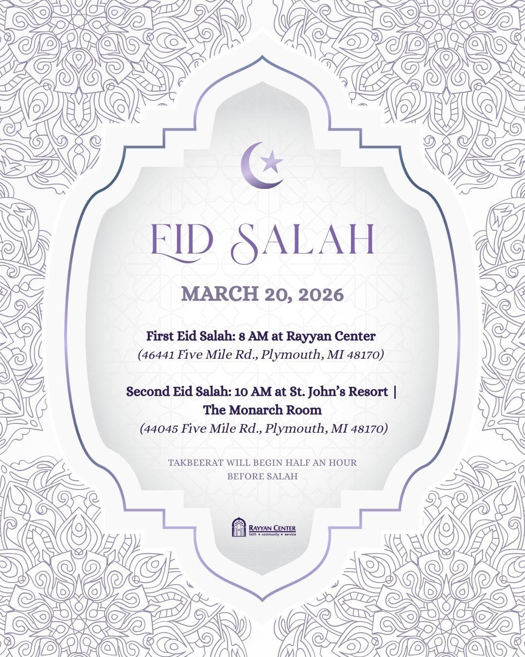 The Zakat-ul-Fitr amount for this year is $15 per family member. Zakat-ul-Fitr is obligatory and must be paid before Eid Salah. Click the link below to be directed to the rayyan center Zakat donation page.